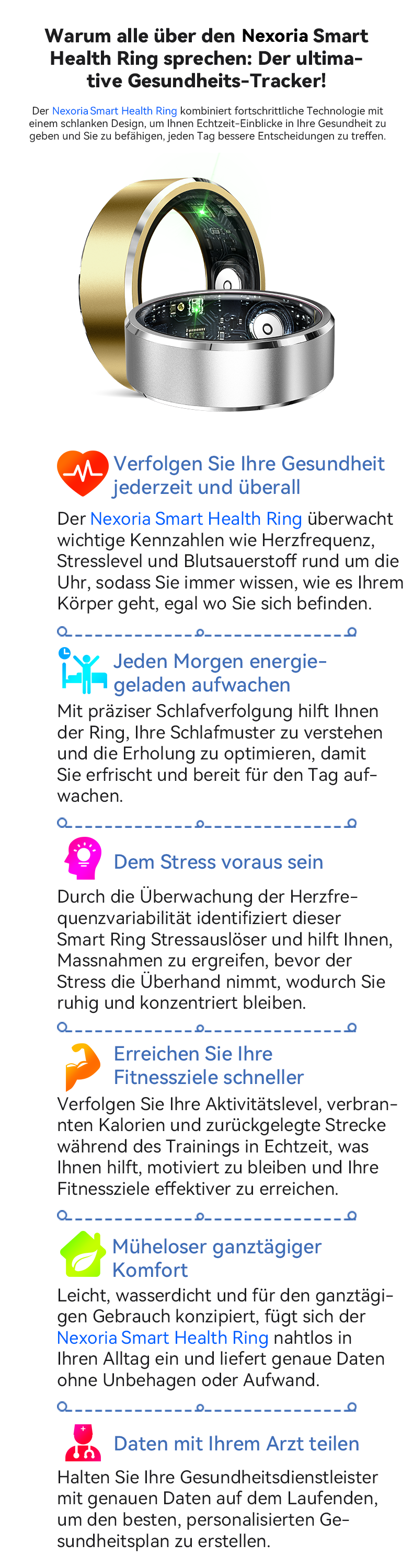 Nexoria Smart Ring: Allwetter-Gesundheitsüberwachung, Ihr professioneller Fitness-Coach und effizienter Alltagshelfer – die vollendete Fusion aus Mode und Spitzentechnologie.