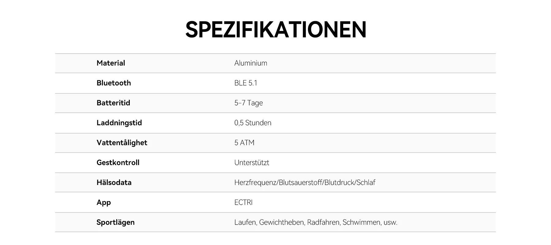 - Vielseitiges Fitnessmanagement - Mehrere Sportmodi und App-basierte Datenanalyse helfen, Ihr Training zu optimieren.